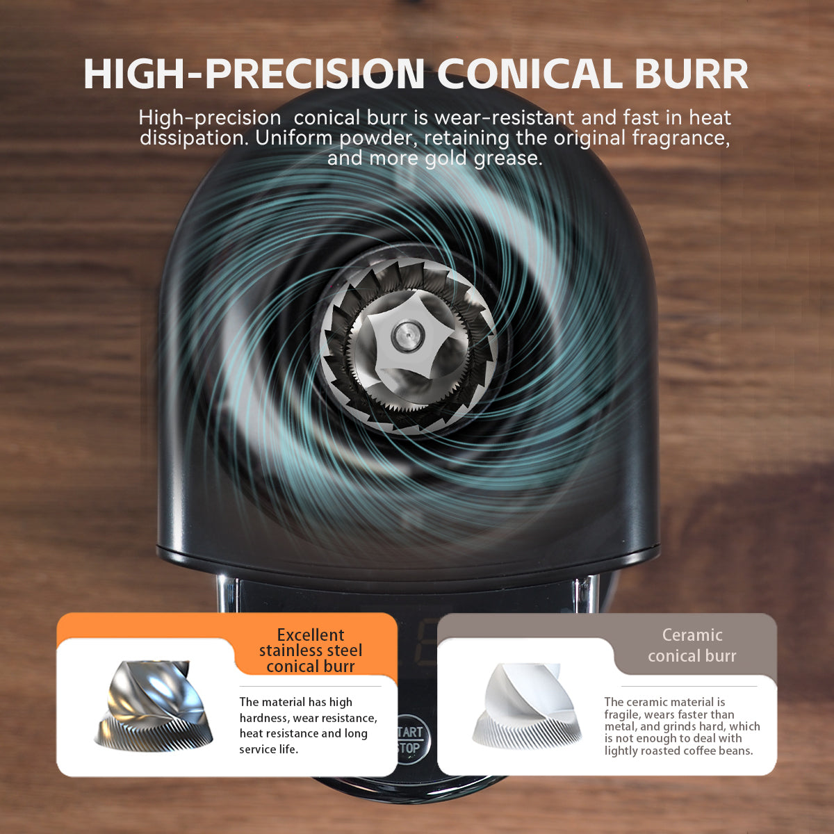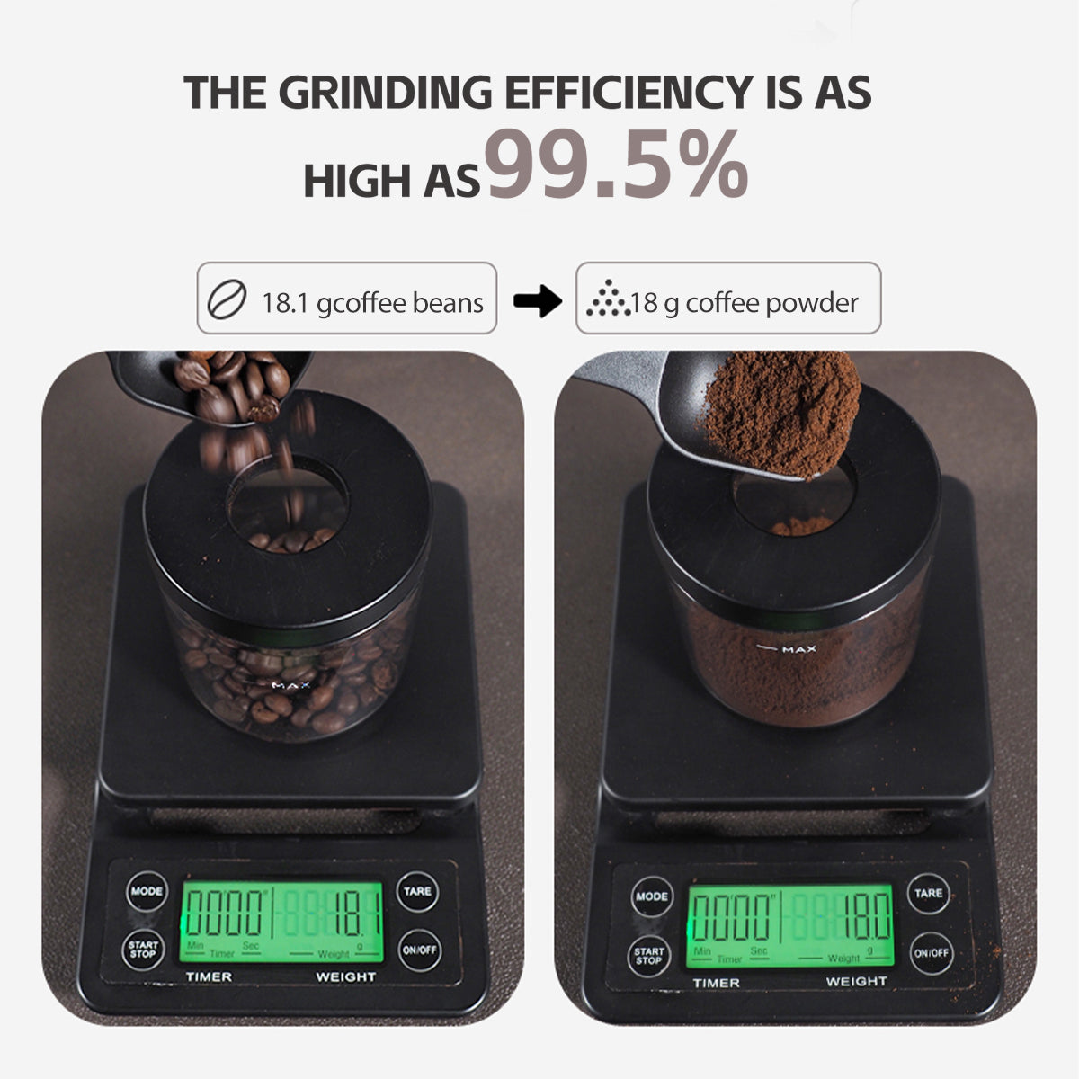 99.5% grinding efficiency! G3’s stainless steel burr converts 18.1g beans to 18g powder—maximizing yield and preserving aroma.
