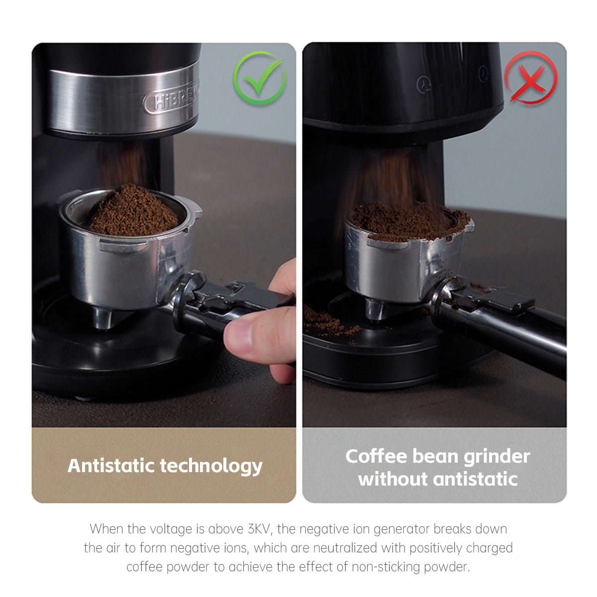 Anti-static technology eliminates powder clumping. G3’s ion neutralization ensures smooth, residue-free coffee powder flow.