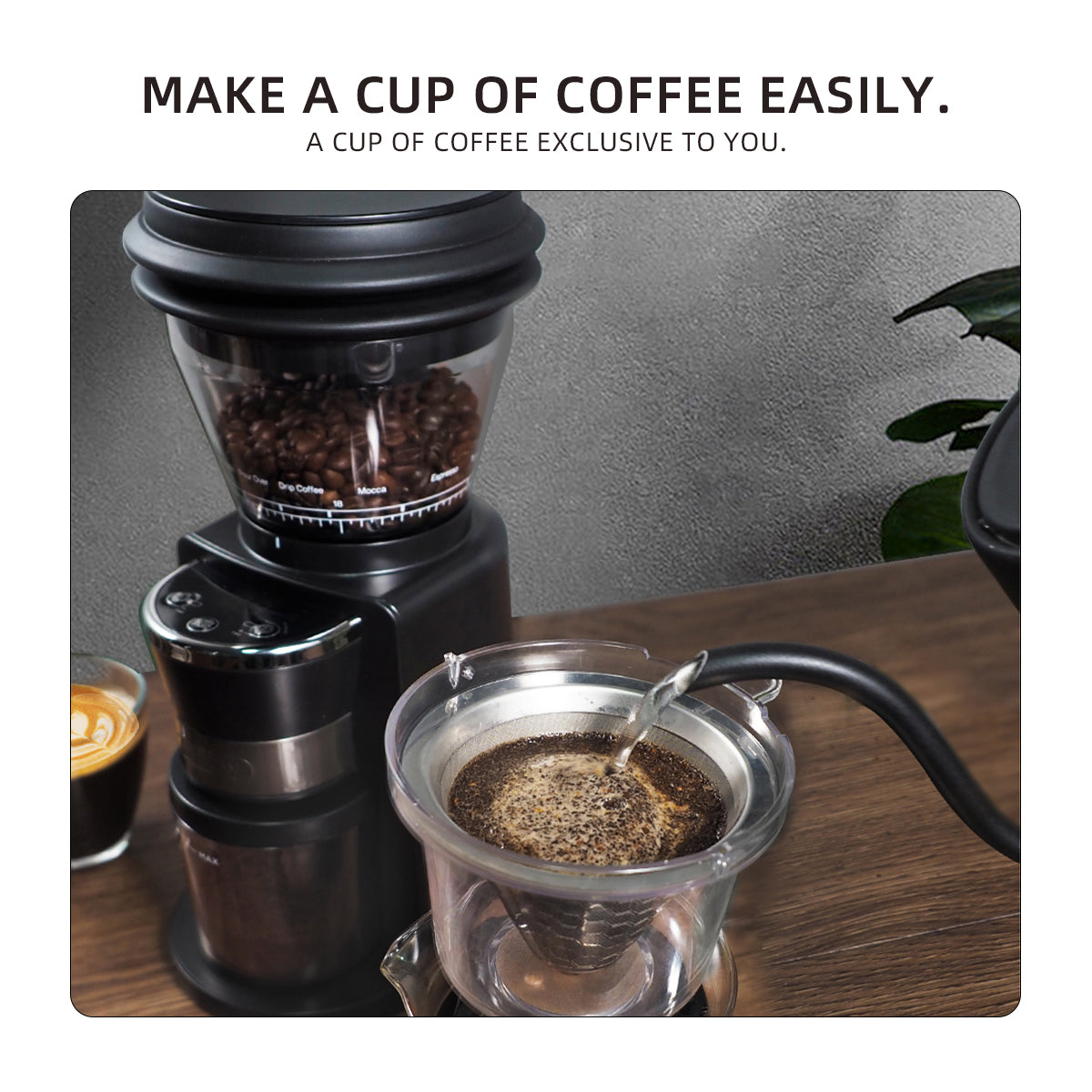 Gram-level precision grinding. Ensures accurate doses for espresso or filter coffee, with consistent results every time.