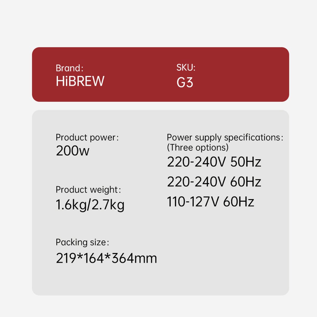 200W motor, 1.6kg weight, 220-240V/110-127V compatible. Compact (219x164x364mm) yet powerful for home or café use.