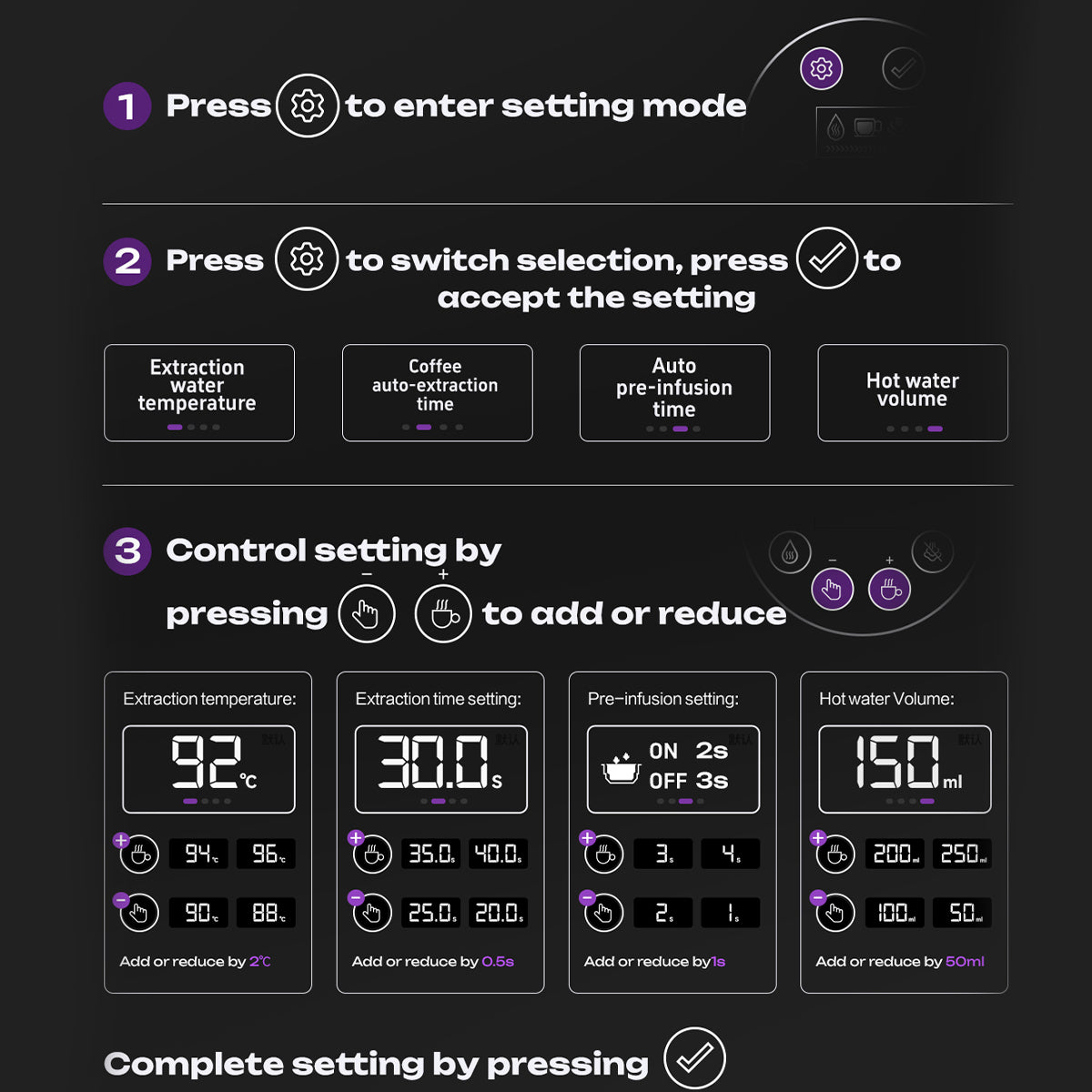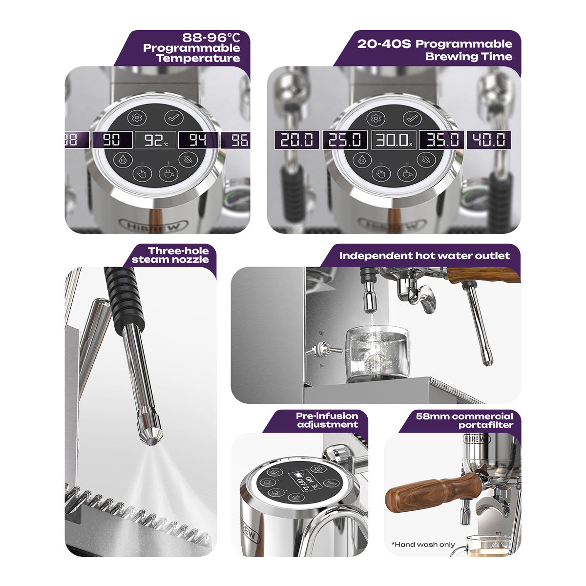 Programmable Extraction Time (20–40s): Tailor your shot to perfection.
