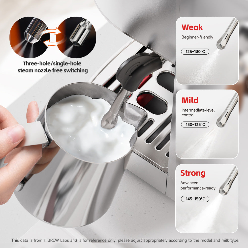 3 Dampfstufen für die vielseitige Kreation von Cappuccino-Kaffeekunst.