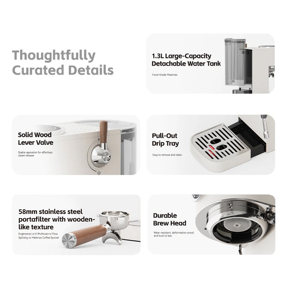 🎛️ Erweiterte Anpassung – Passen Sie Brühtemperatur, Wassermenge und Vorbrühzeit an und speichern Sie Benutzervoreinstellungen für Ihre Lieblingsgetränke.
