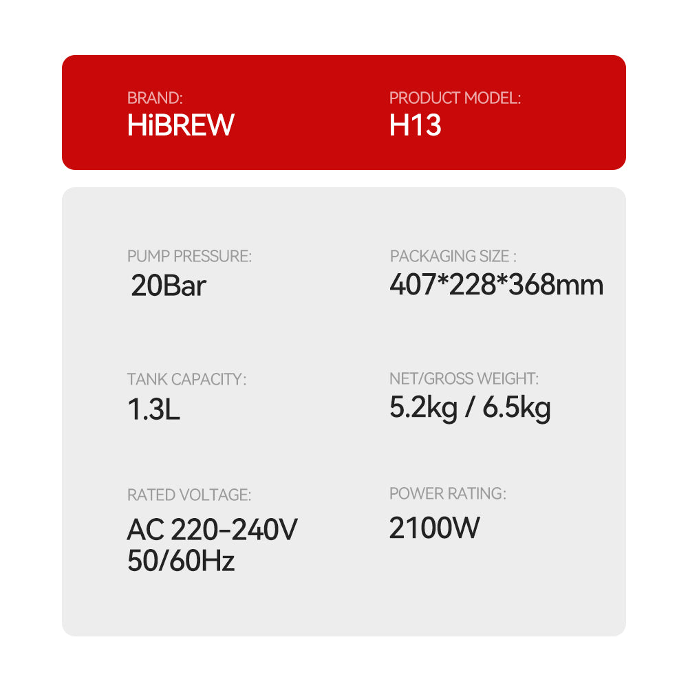 HiBREW Dual Boiler Espressomaschine mit intuitivem Touchscreen H13